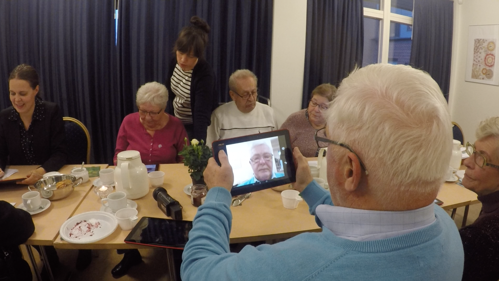 Os – Thomas, Rasmus, Line og Signe – fra Give&Take projektet havde medbragt æbleskiver, gløgg og tablets. Efter lidt hyggesnak over æbleskiverne og gløggen prøvede vi – alle der havde lyst – at skabe en profil på Give&Take hjemmesiden og at blive medlem i Stjerneklubbens “rum” på hjemmeside. Det tog lidt tid at få taget det rigtige profilbillede.